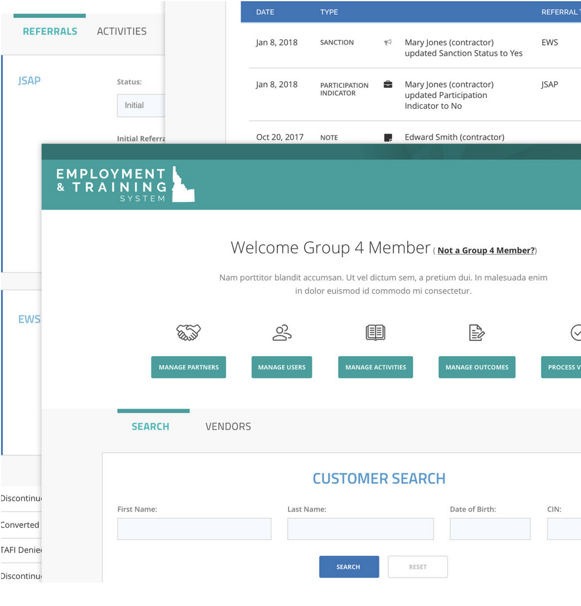 The Employment and Training System (ETS) was developed by GovWebworks for the Idaho Department of Health and Welfare (IDHW) to enhance the Supplemental Nutrition Assistance Program (SNAP) by connecting participants with counselors and service providers. The platform aimed to facilitate the tracking of participant progress and outcomes through comprehensive case management tools, ensuring data accuracy for federal reimbursement. The system was designed to be vendor-agnostic for case management data, accommodating both SNAP and Temporary Assistant for Families in Idaho (TAFI) recipients by differentiating their program needs effectively.